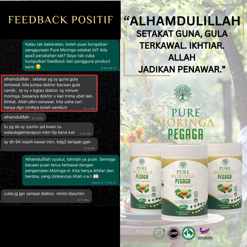"Alhamdulillah, tekanan bacaan gula dan tekanan darah tinggi dah turun"