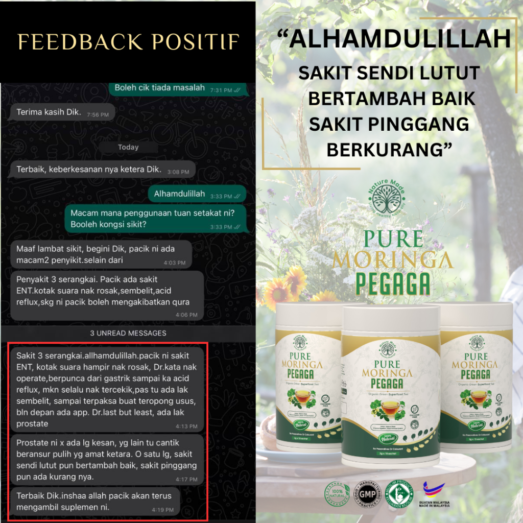 "Sakit sendi lutut bertambah baik, sakit pinggangg berkurang"